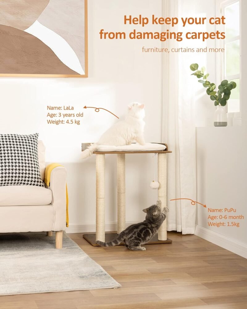 • Super luxury natural sisal posts: three 23.6 inch natural full sisal posts, so that your feline friends have a more comfortable scratching and tickling environment, so away from your furniture, to protect the interior neat and beautiful