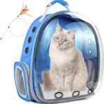 Cat Backpack,Pet Bubble Backpack Carrier with Cat Wand Feather Toy,Large Portable Ventilated Transparent Carry Backpack for Cat & Small Dog,Airline Approved Kitten Carrier Bag for Hiking Outdoor
